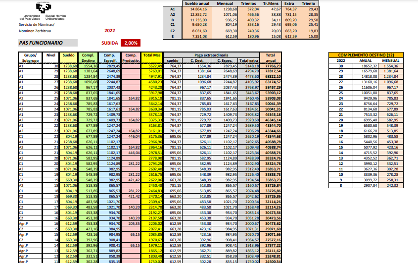 SUELDO DEL PERSONAL AL SERVIVICIO DE LAS ADMINISTRACIONES PUBLICAS VASCAS SEGUN EL PORTAL DE TRANSPARENCIA DE LA UPV